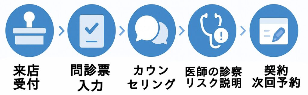 クリニックに来店してから契約まで、どのような流れで進んでいくのか気になりますよね。